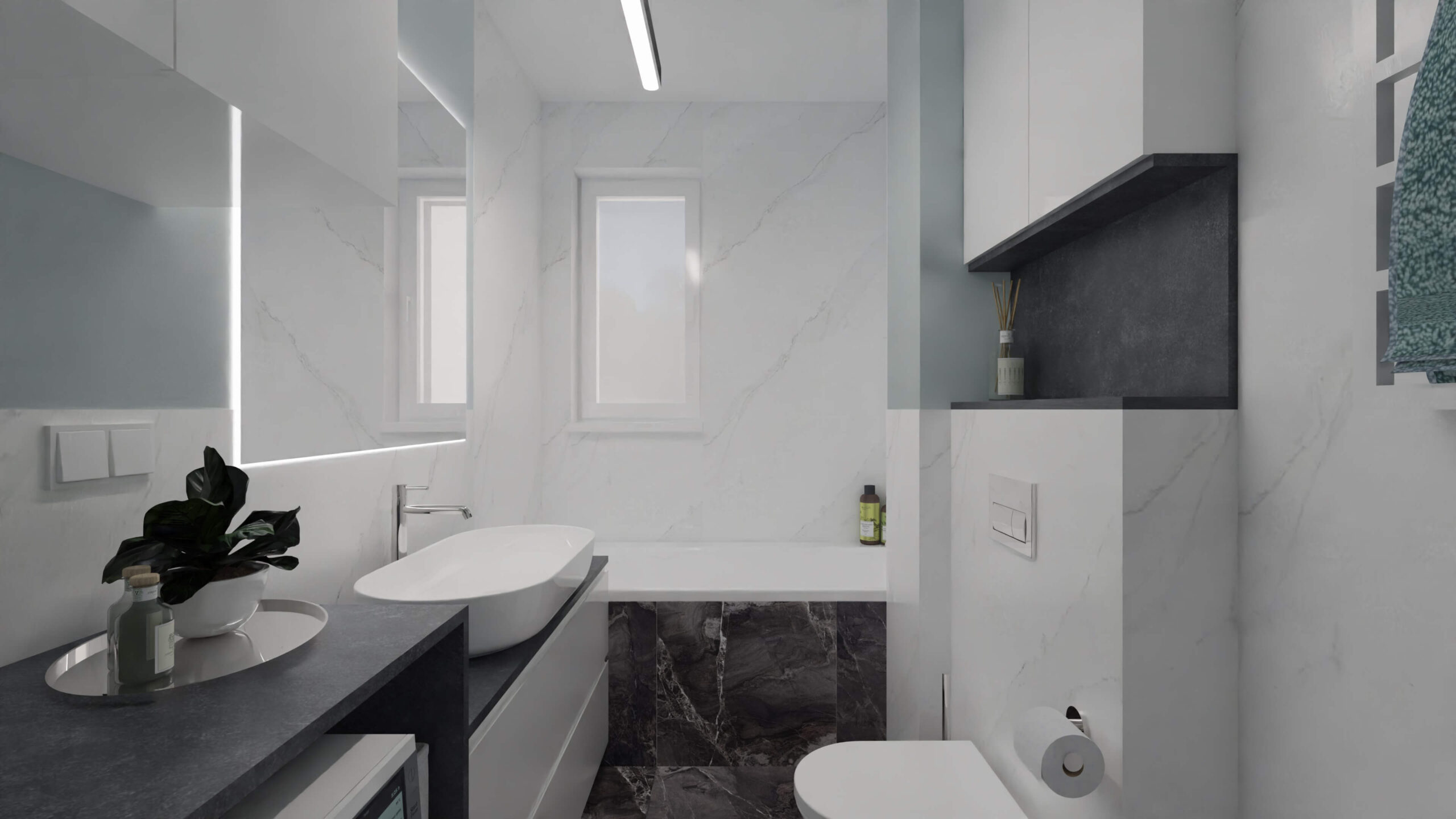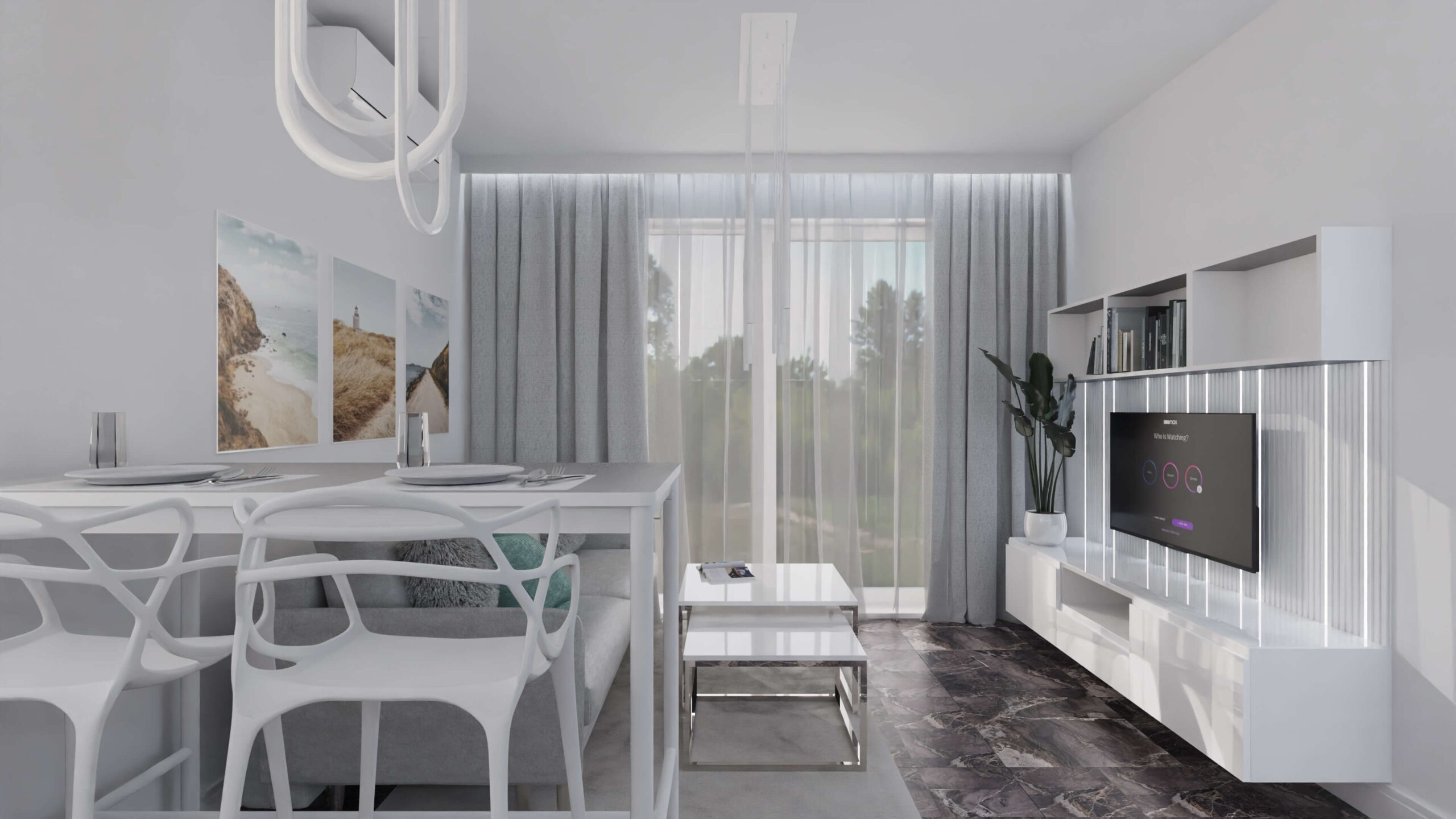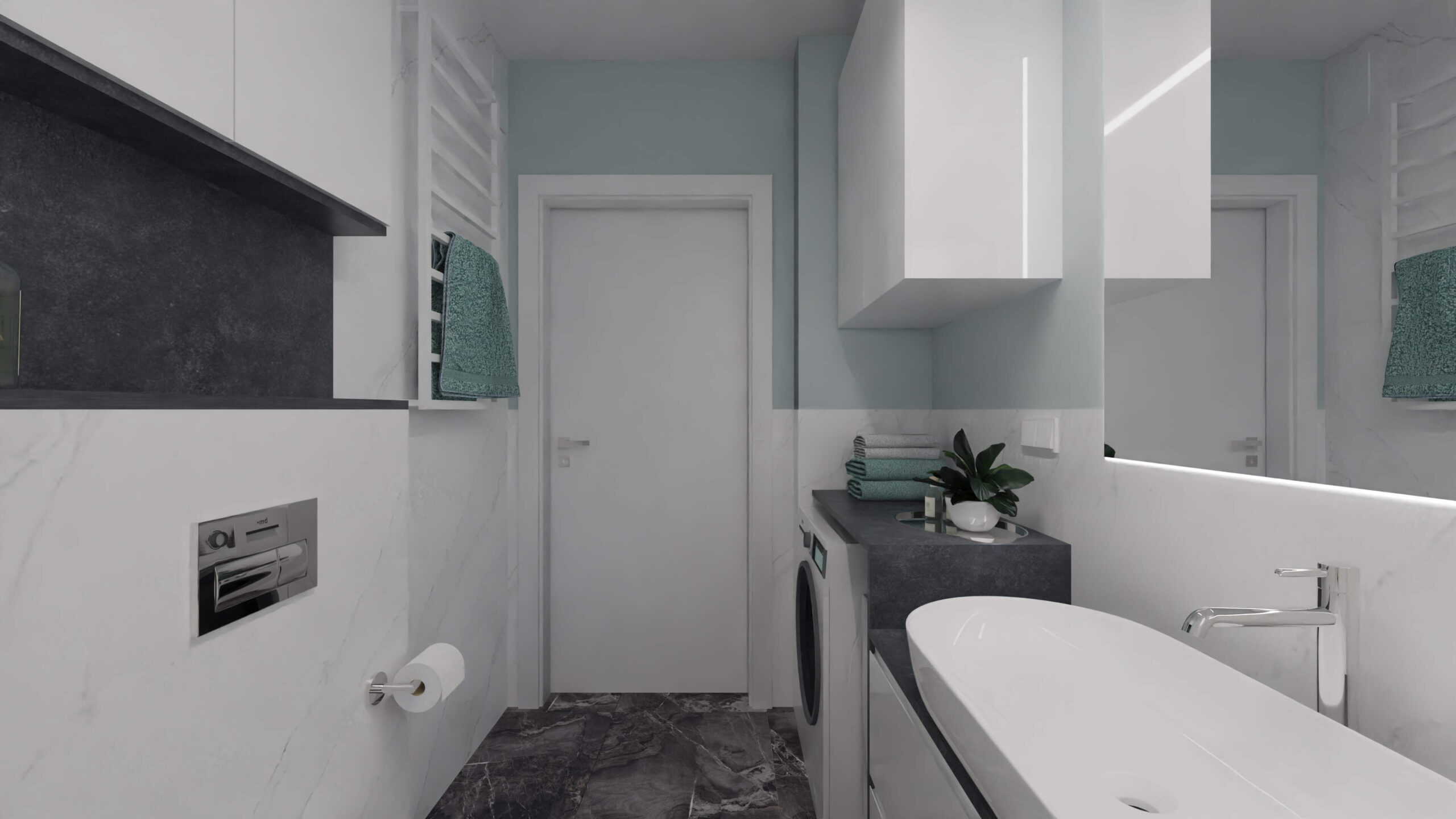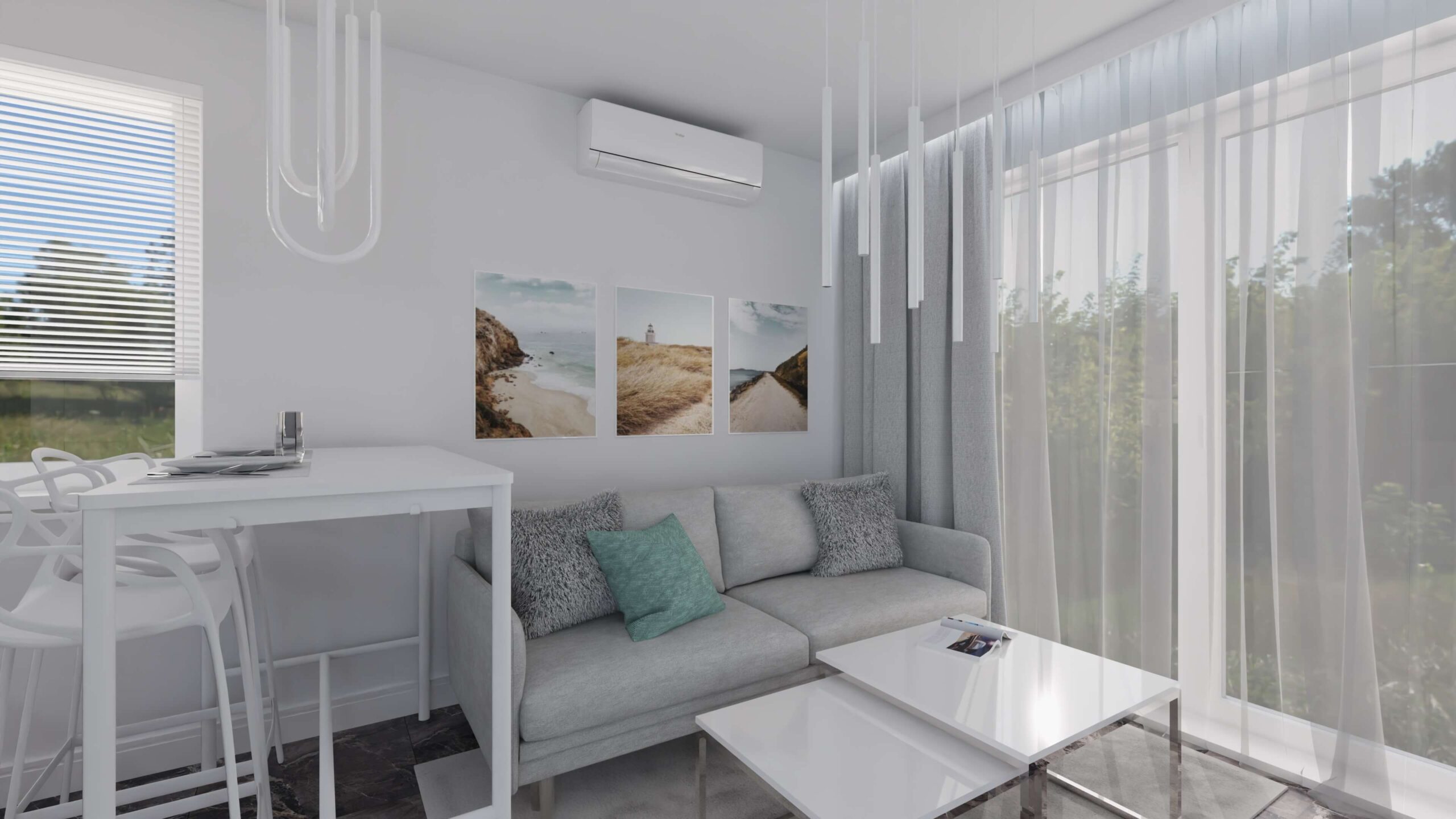 Mieszkanie w stylu nowoczesnym Mieszkanie w stylu nowoczesnym i stonowanych barwach przełamanych miętą. Projekt obejmował całe wnętrze: salon z aneksem kuchennym, sypialnię, łazienkę i przedpokój.